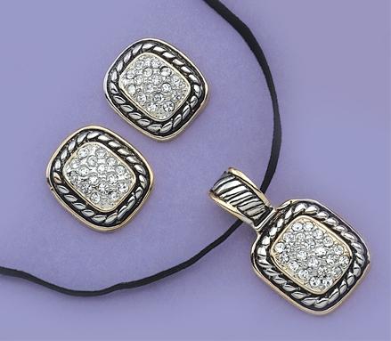 SNT36DR: Yurmanesque Style Crystal Earrings & Necklace Set