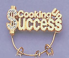 CHP112: Crystal and Gold "Cooking Up Success" Charm Holder Pin