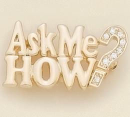 PA432: "Ask Me HOW?" Pin in Gold with Crystals