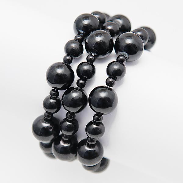This fun triple strand glass pearl bracelet comes in Black or White.