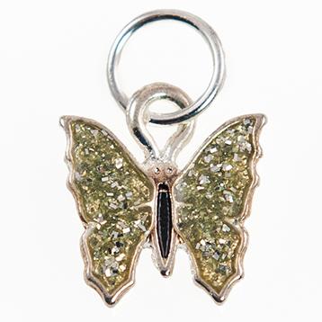 This beautiful diamond dust Butterfly Charm comes in gold. Please specify color when ordering. Lead Free, only available in gold.