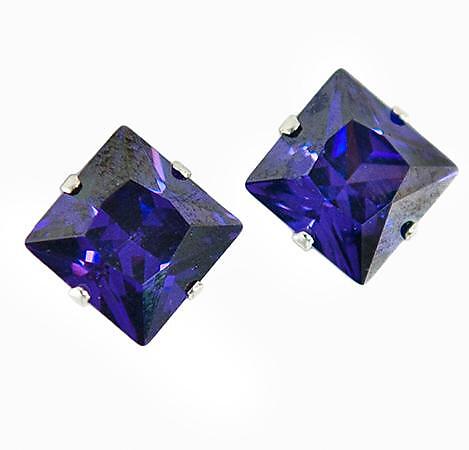 Stunning Deep Blue Sapphire CZ Sterling Silver pierced Earrings. Also available in Amethyst (Purple). Select color when ordering.