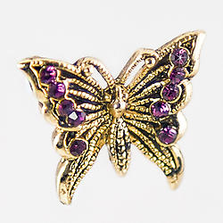 Austrian Crystal Butterfly in a Gold or Silver finish. Each necklace comes in with Fuschia, Blue, Topaz, Black,Pink or Clear Crystals Design of butterfly pendant has changed slightly. Pendant is approximately 1/2 long and is on an Illusion 16 to 18 inch Necklace. The Butterfly appears to be floating on your neck.