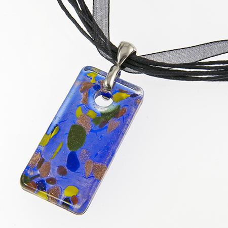 Murano Glass Pendant on a multi-strand black ribbon Necklace (16" long + 2" extender). Each pendant is unique. Above images show example variations.