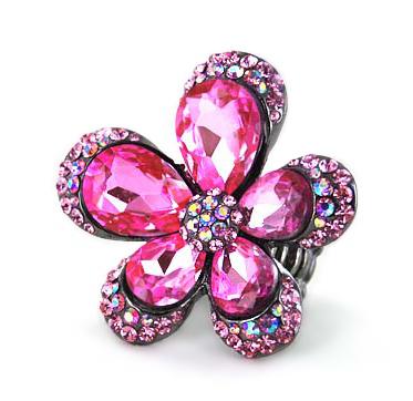 Dazzling Austrian Crystal Floral Stretch Ring fits most fingers. Five beautiful Petal shaped Austrian Crystals are accented by numerous pave' set Austrian Crystals. Ring measures approximately 1 3/4 inches across. Comes in your choice of Black Diamond or Fuchsia. OUT OF STOCK.