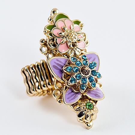 Floral Stretch Enamel Black and Grey is accented with Black diamond Austrian Crystals. Also comes in pastel pinks and purples. Please specify color when ordering. Please specify color when placing order. Ring fits most sizes. Lead Free.