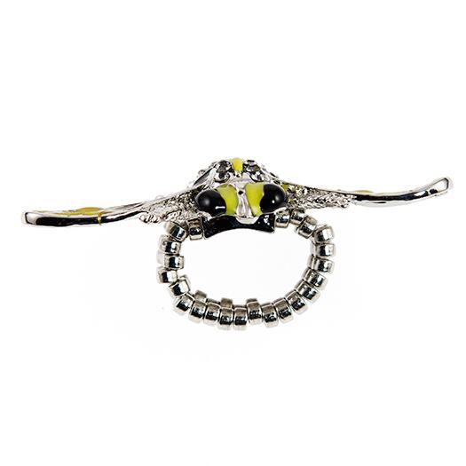 This fun Bee Ring comes in one size and is adjustable to fit most fingers. Please note this is a large ring about three inches across. Lead Free.
