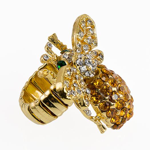 Large crystal Bee Ring comes in Topaz, Red, Green and Black. Limited quantities. Colors will be assorted on larger orders.