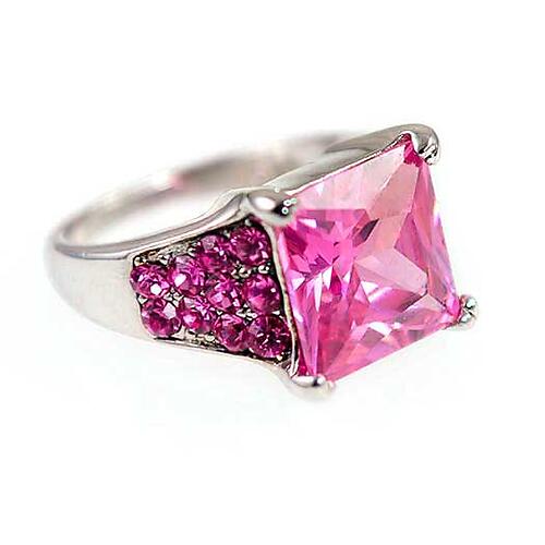 Pink Ice CZ Ring SIZES 6-9. Emerald cut stone in the center accented with pave set CZ's on the side .