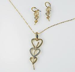 Elegant 3-Piece Tiffany Style Crystal Heart Earring and Necklace Set accented with clear Austrian crystals set in silver or gold finish. Please specify color when placing your order. Comes with a 16" chain + 2" extender. Earrings are pierced.