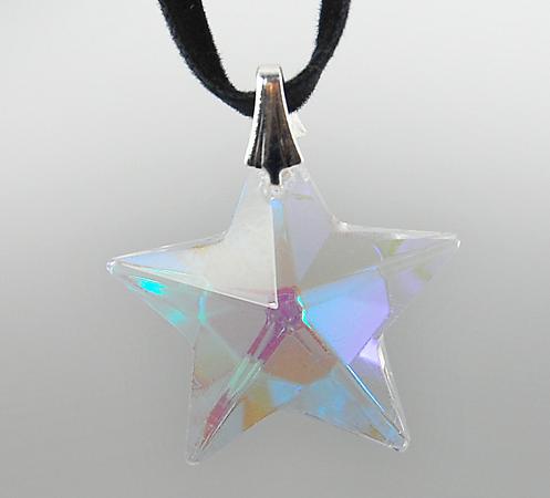 Swarovski style AB Austrian Crystal Star Earrings and Necklace. Necklace is on a 18 inch length faux suede chain. Sterling Silver platting.