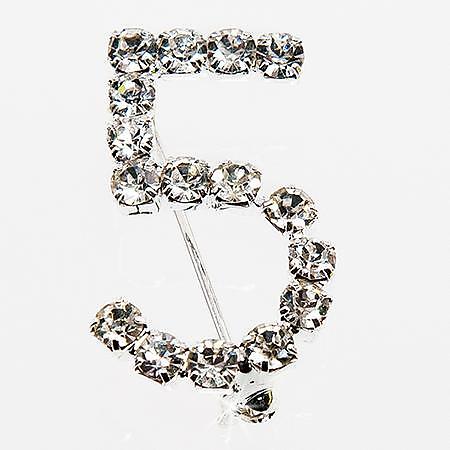 Single Digit Crystal Bar Pin, available in numbers 1 through 9 (number '1' pictured above); in Austrian Clear Crystal set in gold finish. Specify desired Number when ordering.