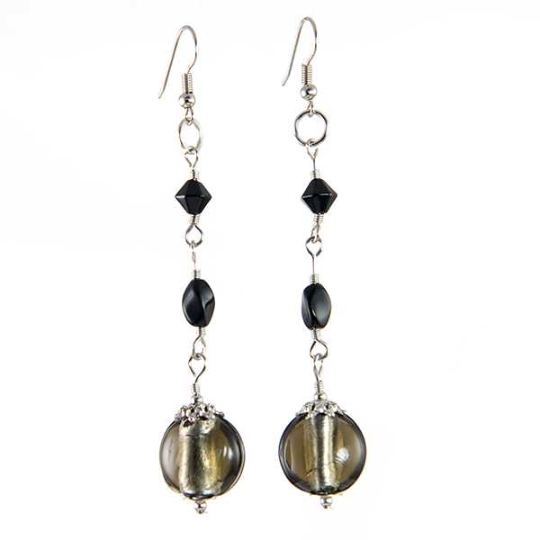 Murano Style Glass Bead Earrings. Each glass bead is unique. Variations occur due to the artisan quality of the beads.