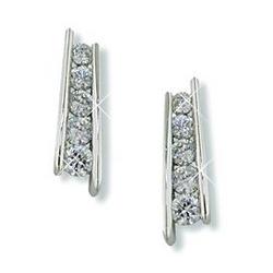 Tiffany style Earrings with 5 graduated clear diamond CZs. Your choice of Gold or Silver Rhodium settings.