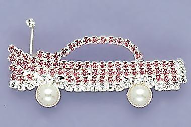 Pink Austrian Crystal 'Caddy' Car Pin with Pearls. Pin is now set in a gold finish silver is no longer available. Measures approximately 2 inches long.